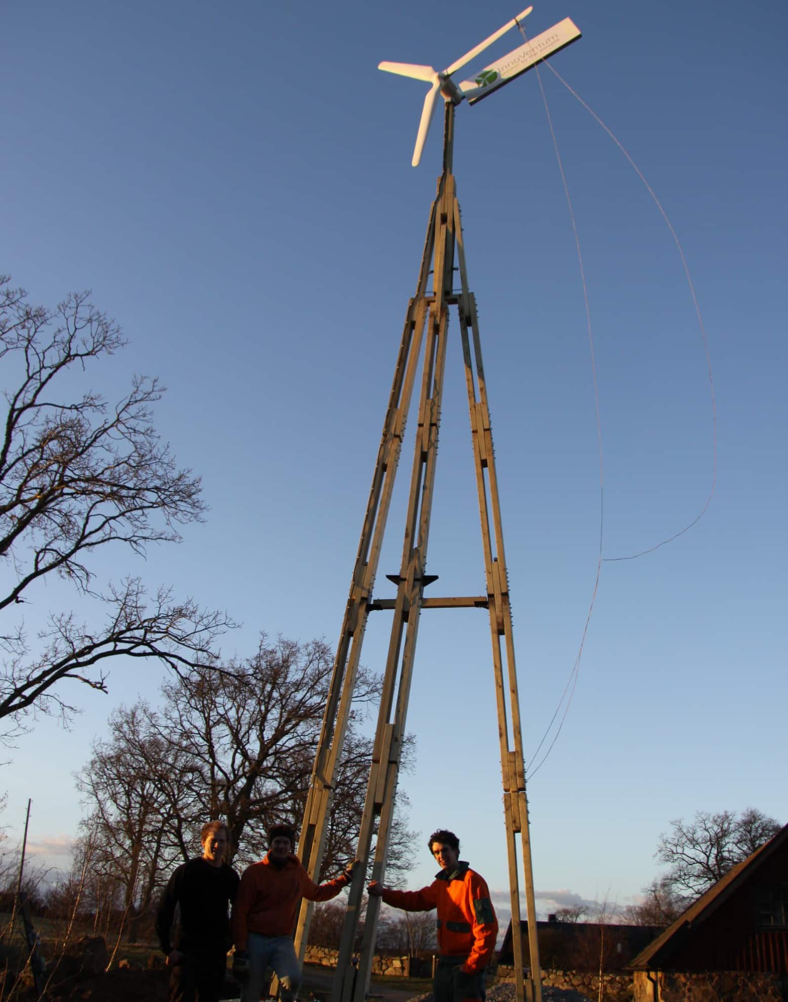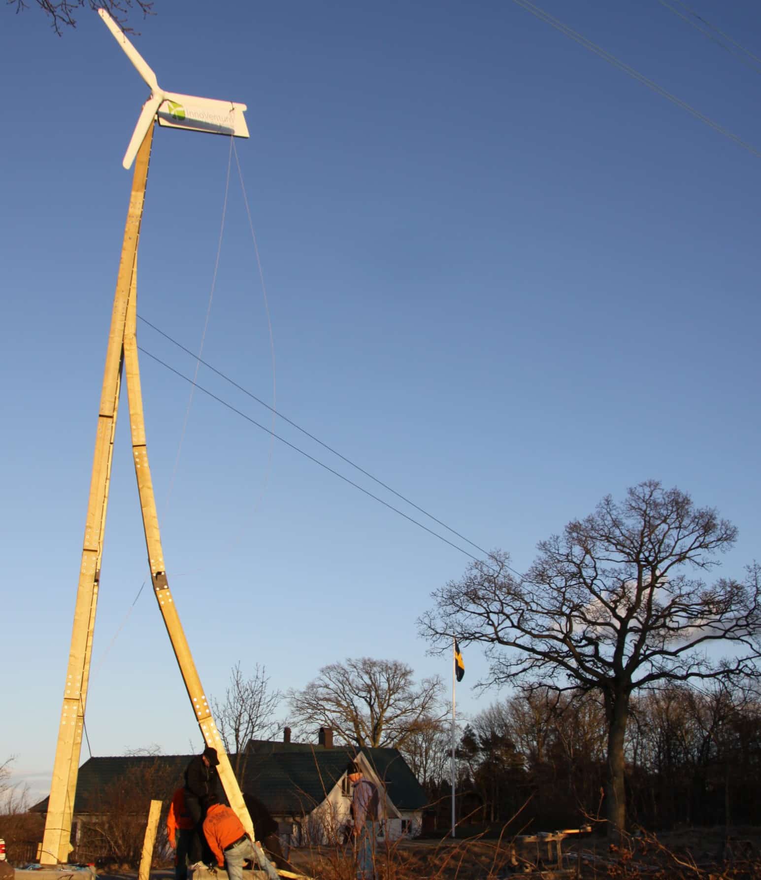 The Dali installations shown in this case took place in 2011-2014 in various locations in Sweden, Holland and the Philippines. Concrete was used for the foundations. The wood used for the Dali tower was Swedish pine. The wind turbines ranged from a 1.75 kW machine made in Holland to a 3 kW turbine made in China. In each case the electrical connection was made professionally by a local utility provider.